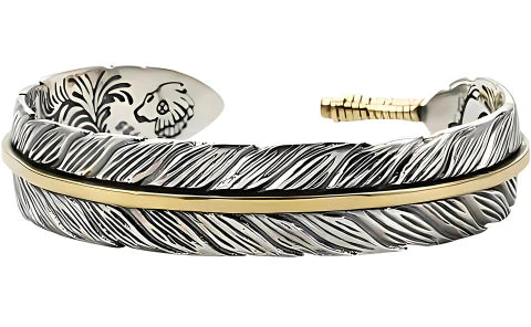 A unique feather-motif design crafted for both men and women. The entire bracelet is finished with a high-quality silver plating that is designed to resist fading and maintain its vintage luster.